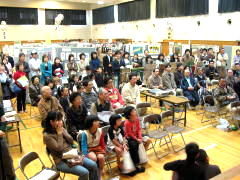 緑園地区で活動している57もの各種団体・グループが一堂に会し、相互交流するとともに、その活動状況を住民に知ってもらい、住民に参加を促そうと昨年に続き、11月30日(日) 緑園地域交流センター全館を使って、緑園活動見本市「エンジョイライフ・メッセ 2008」が開かれた。冒頭の主催者側開会挨拶に続き、この発表が行われ、参加していた緑園住民の人たちも知らないことが多く、感嘆しきりの様子であった。 広い会場に所狭しと並べられている各グループ・団体のブースの間を、大勢の人が人ごみの中を、パネルを眺めたり、説明を聞いたり、質問したりしながら巡回していた。昨年に続き2回目ということもあり、顔見知りも多いことから、和やかな雰囲気の中、活発に交流している様子が感じられた。