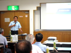 公的機関や他人任せでは解決できない身近な生活課題が地域に増えてきた今、住民自身が互いに支え合う『つながりづくり』の必要性が高まっている。地域福祉の取組みとして「頼み・頼まれる関係」作り、繋がり、絆が必要。それには、いろいろな機関・団体が互いにその機能・役割を相互理解することが欠かせない。それを作るには「共通理念・課題・目標」と「具体的計画」が必要で、これが地域福祉保健計画だ、としていた。目標は具体的で、住民の声をベースにしたもの。それにより実行に当って参画意識が出る。地域の実情・生活課題に対し、関係機関・団体との役割分担、情報共有に基づき行動すべきだ、とする。 地区社協の主な活動として、@在宅福祉活動(配食サービス、見守りなど) A交流活動(交流行事など) Bボランティア活動 C広報・啓発活動 D調査活動(実態調査など) Eその他(地域・福祉施設行事への参加など)を挙げた。これらの実施により地域をより知ることやその変化・課題の発見につながる。また、つながりが生まれるなどと述べた。住民が地域に目を向け、知ることが地域福祉推進の第一歩で、日常生活において地域が重要な存在で、一方、一人一人が地域を支える重要な存在との認識が深まる。それには、住民に地域の実情、活動目標・計画の説明を行い、理解と賛同を得て参加・参画の機会を増やす必要がある。実施している側が楽しんで、やりがいを持って進めている姿を見せることが重要だ、とした。 最後に、他地域における「10年先の街の姿」「同じ悩みの共有」「福祉教育」「ボランティア活動」などをテーマにした活動事例を持参の資料を見せながら紹介した。 |